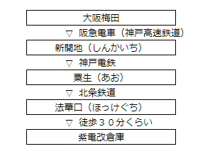 大阪から行く場合だと、阪急電車で新開地行きの特急などで終点の新開地まで行きます。